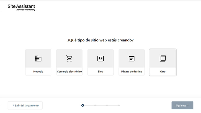 Accede ao teu WordPress e segue os pasos do asistente de IA. Elixe o tipo de web que prefiras (negocio, comercio electrónico, blog, páxina de destino ou outro) e introduce os datos básicos do teu proxecto: un título e unha descrición que definan os puntos clave que queres que se mostren na opcións de deseño web que che ofrece o creador.