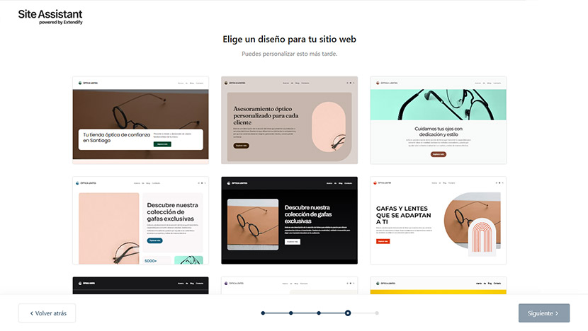 Selecciona a estrutura e o deseño que prefiras para a túa páxina entre as diferentes propostas do asistente. Edita as seccións que queiras que incorpore e nuns minutos estará lista para empezar a enchela de contido e personalizala. Fai os cambios que queiras despois!